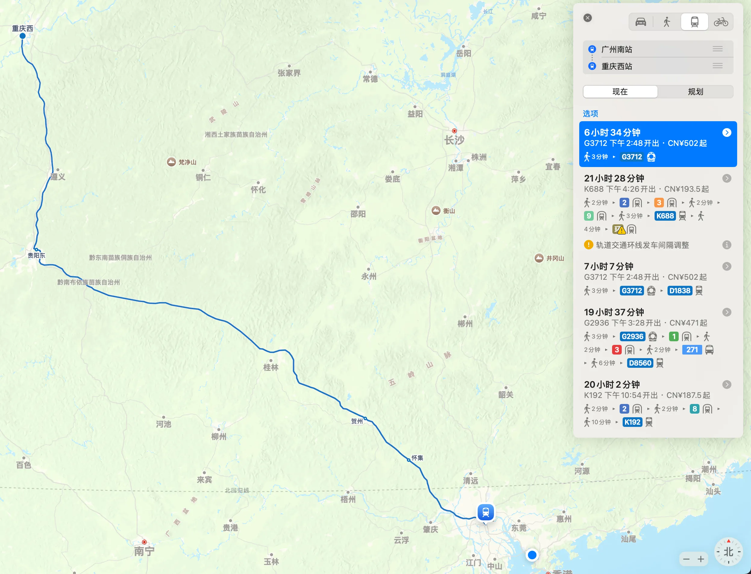 广州南 - 重庆西的列车会经过这两条线路。第一次体验到隧道这么多的高铁