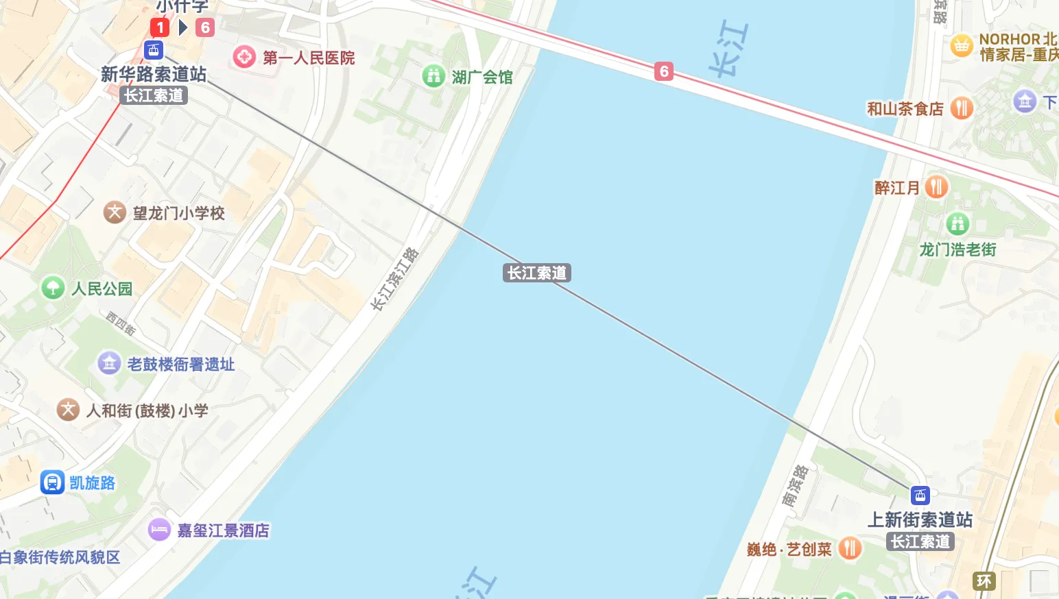 在长江正上方经过的索道,建议在上新街索道站搭乘,排队的人会少很多