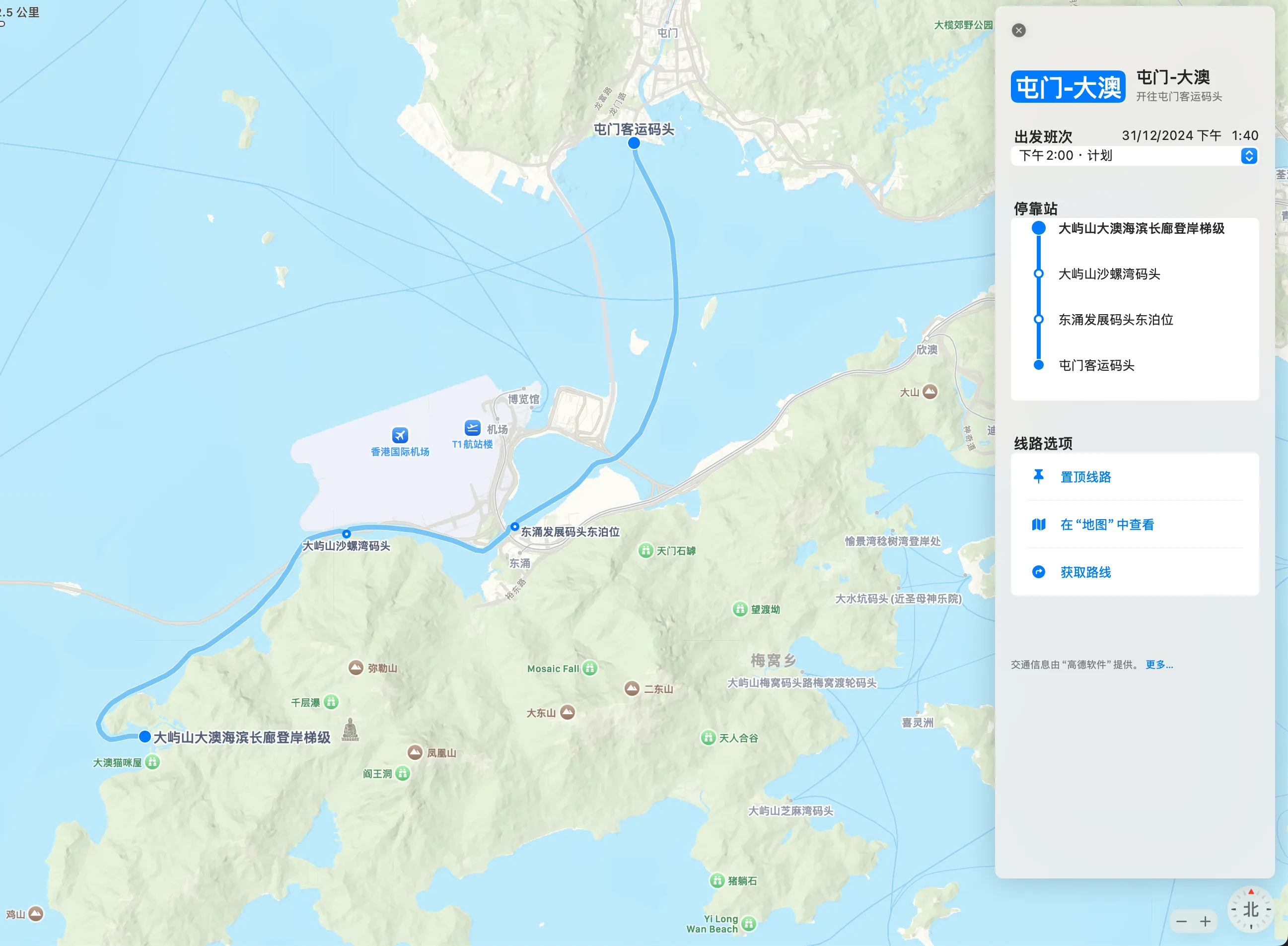 公司部门团建去的,主要是打卡观光港珠澳大桥。大致航线如下。全程 3 小时