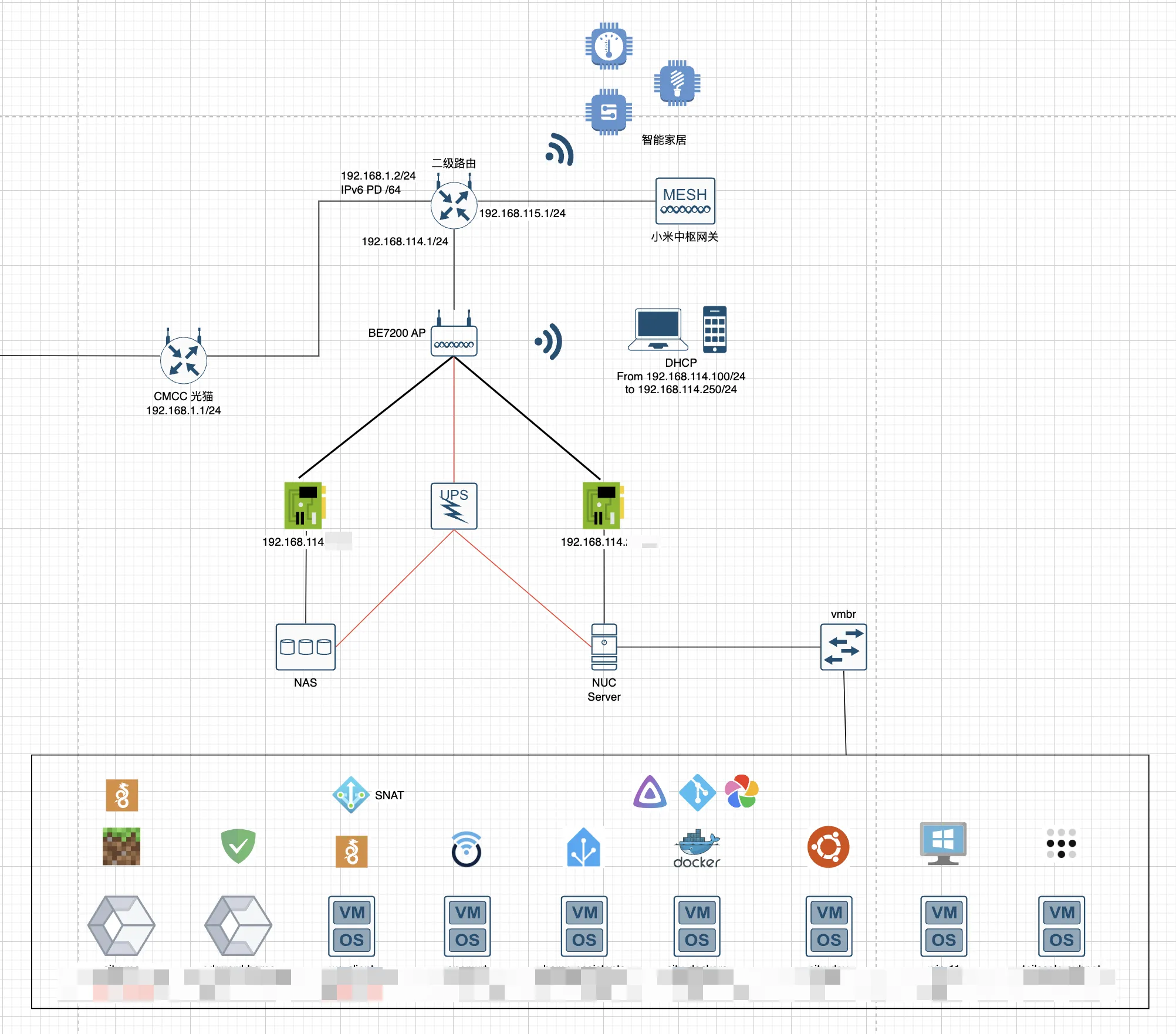 之前画过一张图梳理个人的家庭网络与 self-hosted 服务的现状。后面会把折腾的过程写成文章发出来