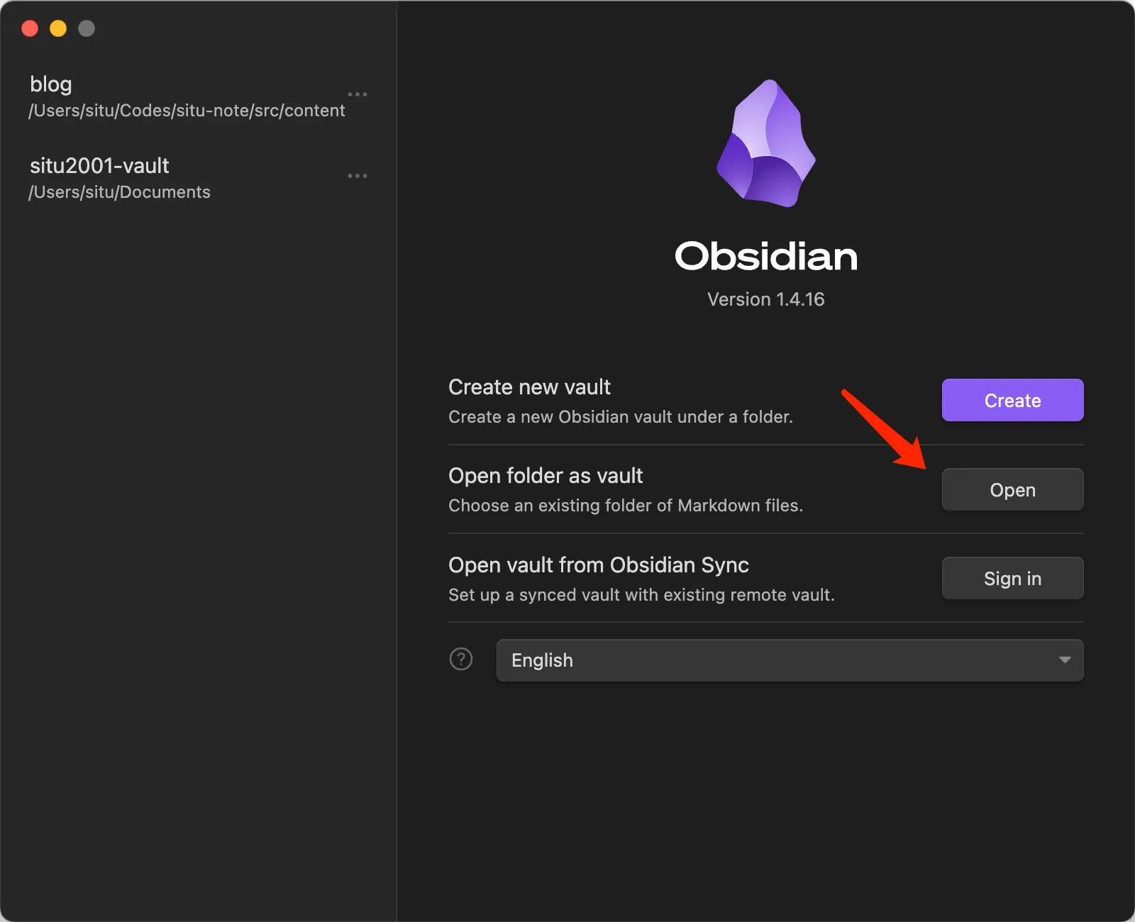 基本配置很简单,只需要把博客文章文件夹添加为 Obsidian Vault 即可。这个时候就能在 Obsidian 编辑器里编辑博客的 Markdown 文件了。