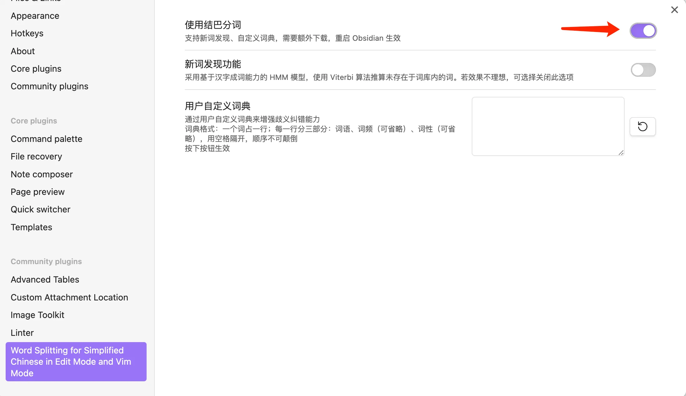 对于分词工具,在设置里启动结巴分词,以获得更准确的分词体验